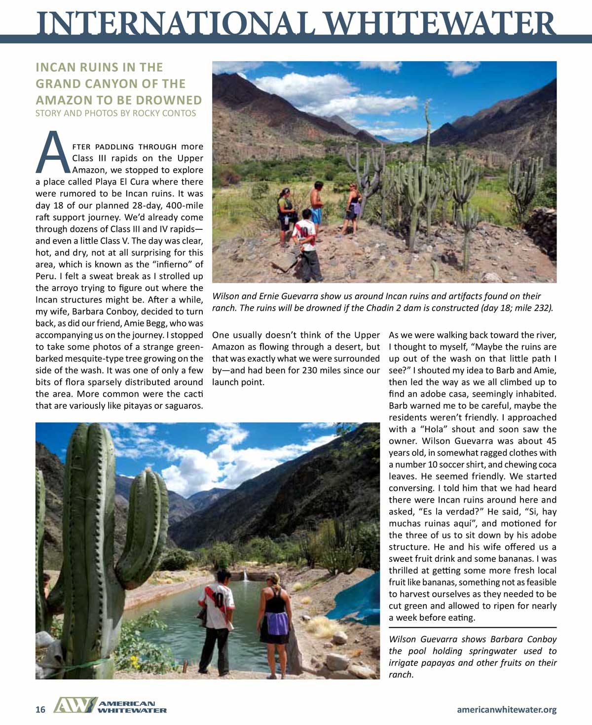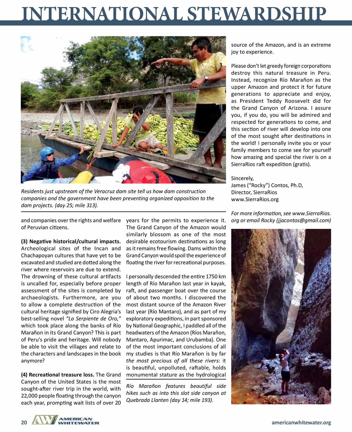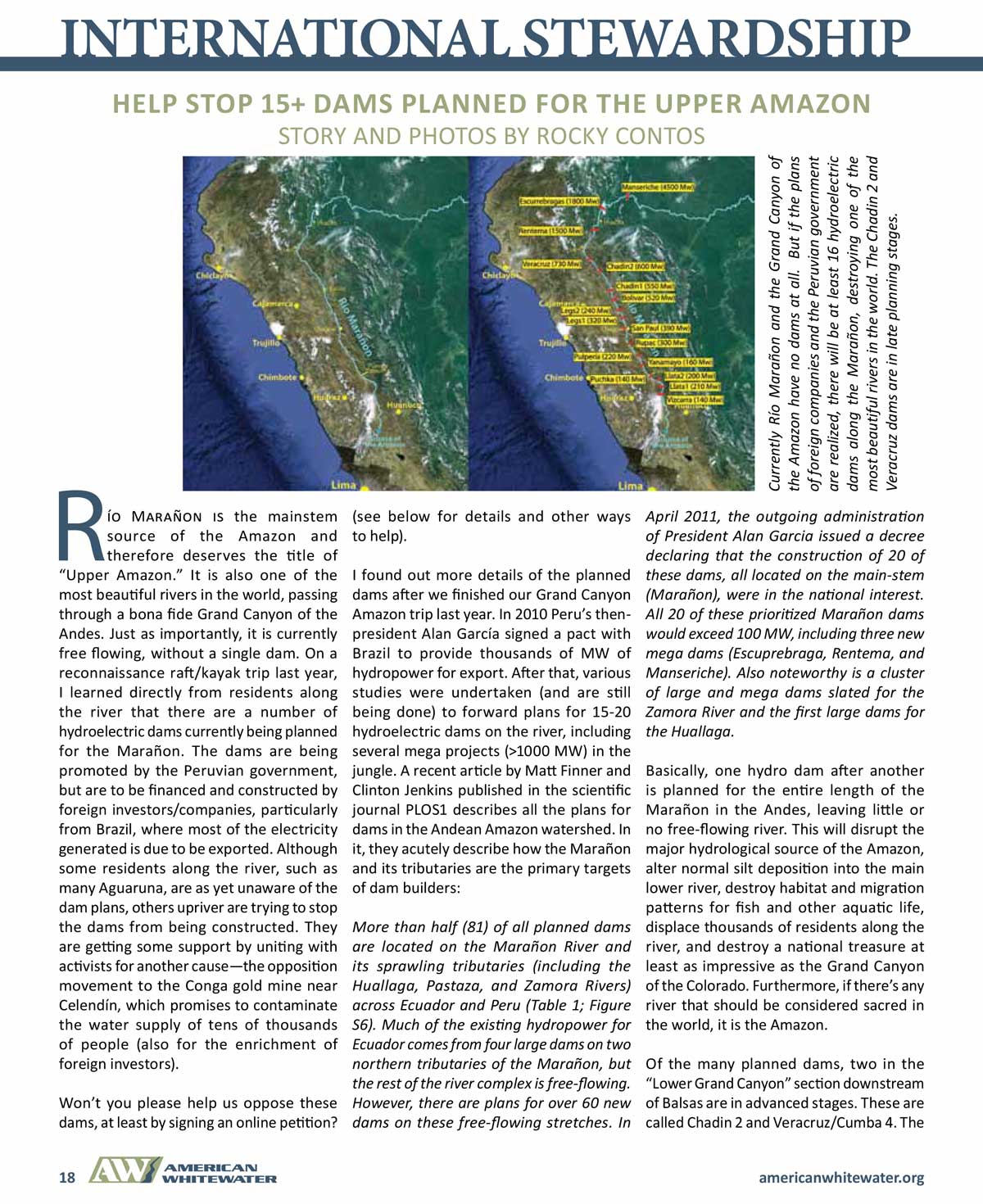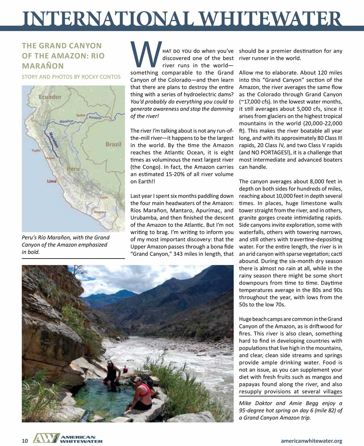 | The Grand Canyon of the Amazon: Río Marañon (and 2 other articles). American Whitewater Jul-Aug 2013; pp. 11-21; by Rocky Contos. | |||||||||||||||||||||||||||||