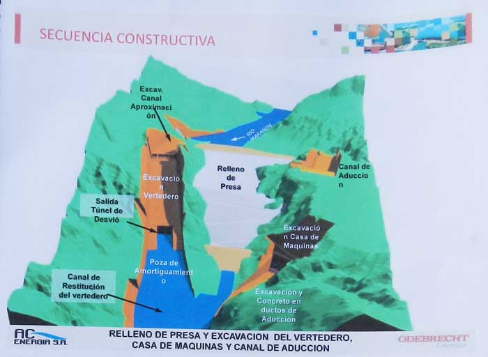 HELP RESIDENTS OF THE MARAÑON PROTEST IN THE CAPITAL Everyone needs to realize that Río Marañon is unique in the tropical Americas as a clean long Grand Canyon-style river that is raftable nearly is entire length and deserves protection for its outstanding attributes. Unlike Rios Mantaro, Huallaga, and Urubamba, the upper Marañon river basin has only moderate habitation, leading to little pollution in the river. The water is clean enough to purify and drink at times and little trash is visible on beaches, in eddies, and stuck on branches. The Marañon is also very raftable - it is a class IV river downstream of 2100 m elevation near the Puchka confluence, making it much more appealing from a recreation standpoint than the overtly difficult Apurimac (and Mantaro, Urubamba, and upper Huallaga). Of all the rivers in the Andes (and all of Latin America), the Marañon is the finest in terms of a beautiful clean raftable long river. It should be considered one of the greatest natural resources in Peru, and appreciated and protected, similar to the Grand Canyon in the United States. If only people knew... The planned damming of Río Marañon is the most important river conservation issue in the world today!! It is of similar magnitude of environmental destruction to the Three Gorges Dam on the Yangtze. This is all being written by me, Rocky Contos, director of SierraRios. I spent 6 months in Peru in 2012 exploring all headwaters of the Amazon after discovering its most distant source (Río Mantaro). I realized the monumental status of Río Marañón as the true source of the Amazon and am extremely passionate about saving this river if at all possible. I've started organizing and leading rafting/kayaking trips on the river (see GrandCanyonAmazon trip). I will be working intently to make the unique qualities of Río Marañon known to the Peruvian people, the Peruvian government, and the rest of the world (through articles, a book, website, film, guided trips, email and Facebook campaigns). I hope that with the realization of the Marañon's outstanding and unique qualities as a free-flowing river, there will be enough opposition - both from the Peruvian people as well as internationally - to stop the current plans to dam, drown, and destroy the river. Please help by at least signing the petition and spreading the word. BELOW: Schematic drawing of the planned 580 ft Chadin2 dam to be built downsteam of Balsas. (from the EIS completed in May2012)
