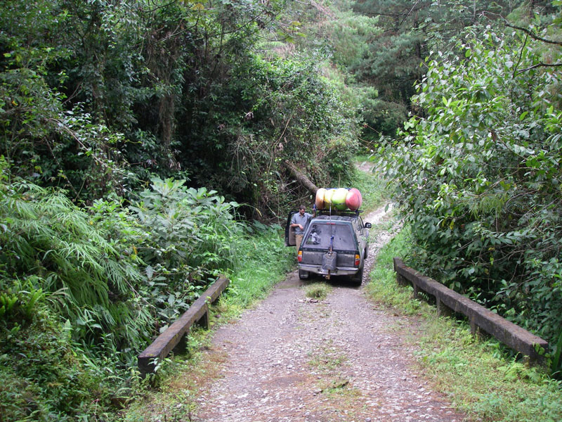 The 7 km "Big Banana" class V stretch of Rio Alseseca (ending at Puente Tomata) is accessed across this bridge near Los Manueles.