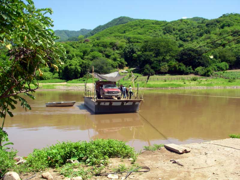 The Lower Humaya is a great ~2 day class III float through beautiful clean barranca country. It starts by this ferry crossing at La Junta.