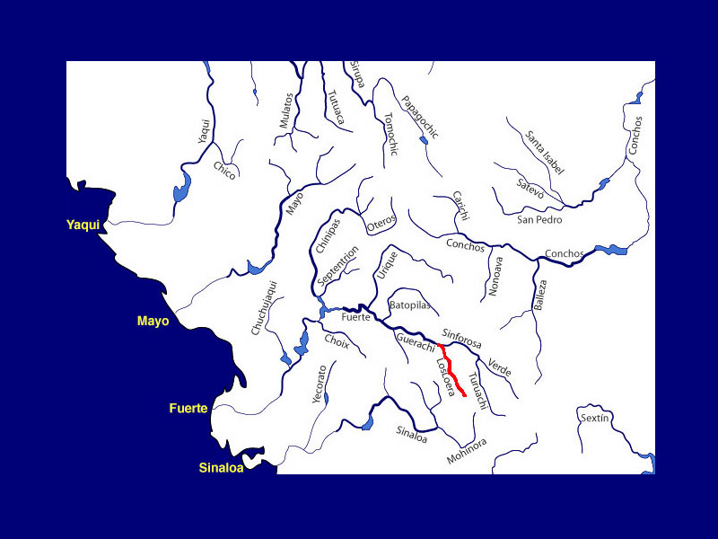 On August 4-9, Tom Meinholz and I did the first descent of Rio Loera, a major tributary of Rio Fuerte that enters in Barranca Sinforosa. [67 km; nearly 1200 m drop;. Avg ~100 fpm] .